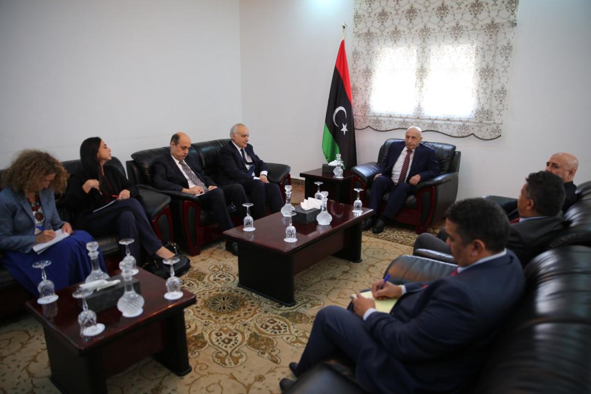 القبة، 6 آب/ أغسطس 2017 - التقى الممثل الخاص للأمين العام ورئيس بعثة الأمم المتحدة للدعم في ليبيا، غسان سلامة، في اليوم الثاني له في ليبيا مع رئيس مجلس النواب الليبي، عقيلة صالح، في مقر إقامته في القبة.