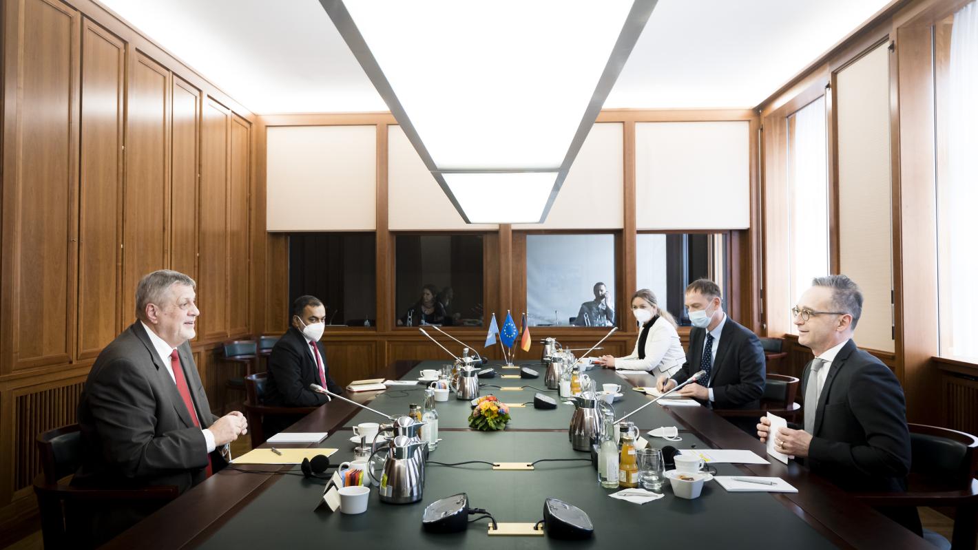 وعقب وصوله يوم الأربعاء، التقى المبعوث الخاص بمستشار السياسة الخارجية للمستشارة الألمانية، يان هيكر. وفي اليوم التالي، التقى وزير الخارجية الألماني، هايكو ماس، تلا ذلك عقد مؤتمر صحفي مشترك (يمكن الاطلاع على نص المؤتمر الصحفي على الرابط). كما التقى لاحقًا بوزير الدولة في وزارة الخارجية، السيد بيرغر، ووزير الدولة، السيد أنن، بالإضافة إلى مسؤولين كبار آخرين من وزارة الخارجية الألمانية.