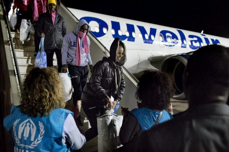 منذ شهر نوفمبر، قامت المفوضية السامية للأمم المتحدة لشؤون اللاجئين بإجلاء أكثر من 1,000 لاجئ من الفئات الأشد ضعفاً من ليبيا وهي تعمل الآن على البحث عن حلول دائمة لهم في بلدان ثالثة. وقد غادرت يوم الثلاثاء طائرة من طرابلس متجهة إلى نيامي في النيجر على متنها 128 لاجئاً، فيما نقلت نقلت طائرة ثانية يوم الأربعاء 150 لاجئاً من طرابلس إلى روما في إيطاليا، مما رفع عدد الأشخاص الذين تم اجلاؤهم منذ بداية عمليات المفوضية قبل ثلاثة أشهر إلى 1,084 لاجئاً.