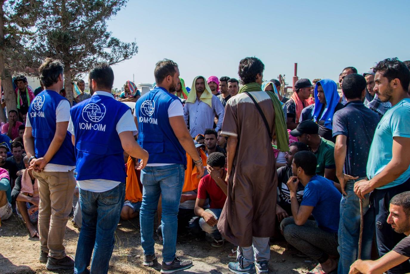 وفي يوم 7 أكتوبر، بعد مرور يوم واحد من أوّل عمليّة نقل للمهاجرين، أرسلت المنظمة الدولية للهجرة فريقا ميدانيا إلى نقطة التجمّع بصبراتة من أجل تقييم الوضع. وبحلول نهاية اليوم، أفادنا الفريق الميدانيّ أنّ 2600 مهاجر (1819 رجلا و704 امرأة و77 طفلا) يوجدون بالموقع تحت إشراف مكتب مكافحة الهجرة غير الشرعية.