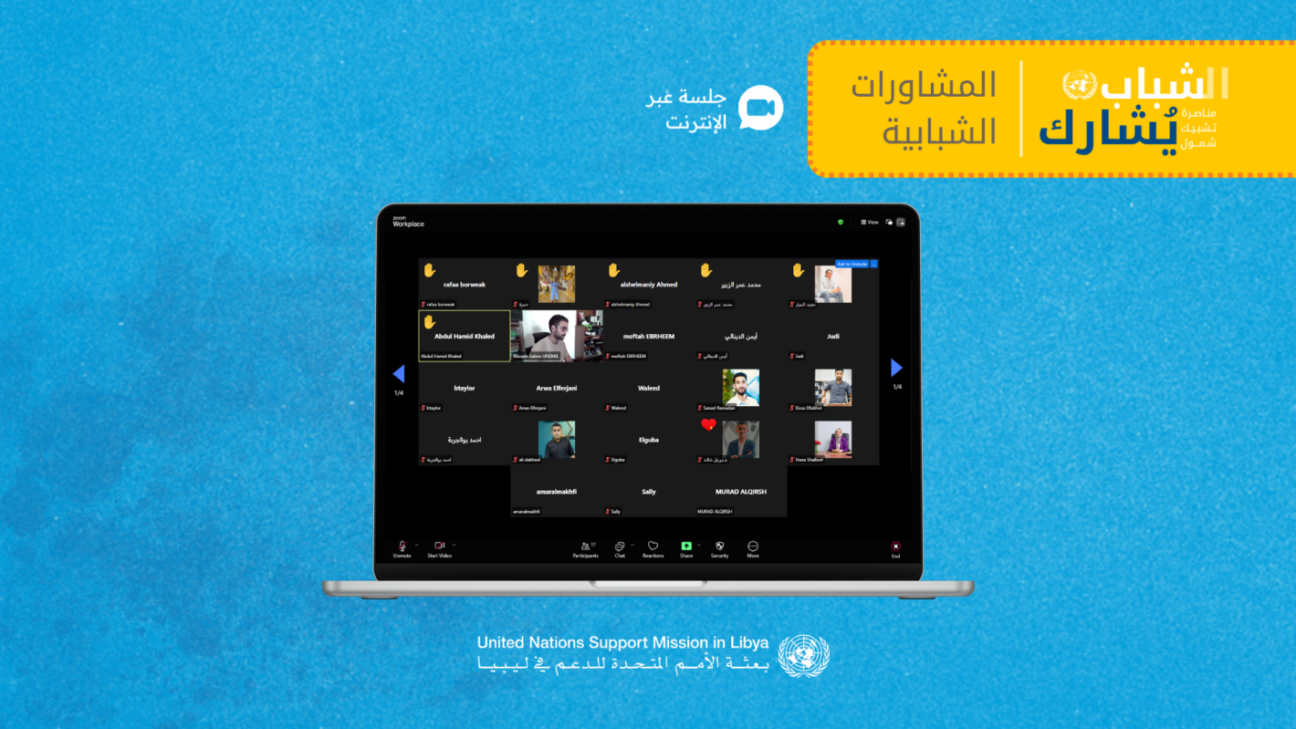 في إطار المشاورات العامة التي تجريها بعثة الأمم المتحدة للدعم في ليبيا مع الشباب حول العملية السياسية، شارك 21 شابًا من مختلف بلديات المنطقة الشرقية في جلسة تشاورية عبر الإنترنت الأحد الماضي. وتركزت الجلسة حول مقترحات اللجنة الاستشارية لإجراء انتخاباتٍ في ليبيا، حيث تناول المشاركون في معرض مناقشاتهم على ضرورة تمثيل الشباب في المؤسسات الحكومية لإعادة بناء الثقة - التي تآكلت - بالسلطة التنفيذية. وقال أحد المشاركين من بنغازي: «لا نثق بأيٍّ من الأجسام الحالية. هناك فجوة ثقة كبيرة بين الشباب والجهات الحكومية لعدم وجود أي تمثيل للشباب».