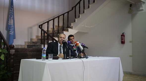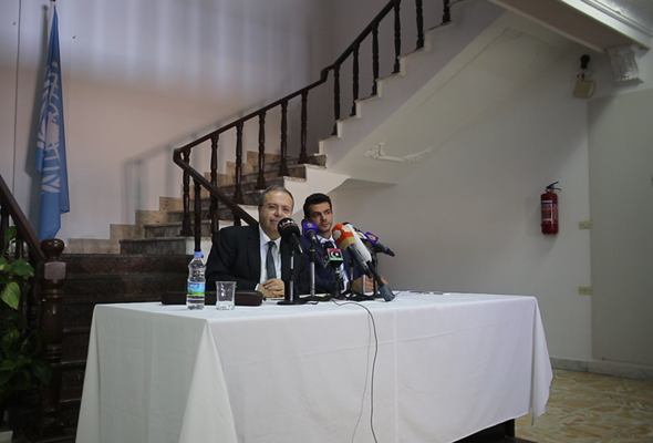 طرابلس، 05 يونيو 2014 - أعلنت بعثة الأمم المتحدة للدعم في ليبيا عن مبادرة لقاء موسع بين مختلف الأطراف المؤثرة على الساحة الليبية، في مؤتمر صحفي عقده الممثل الخاص للأمين العام للأمم المتحدة، طارق متري، اليوم الخميس 05 يونيو 2014 في مركز الأمم المتحدة للإعلام في طرابلس.