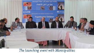 بدأت اليونيسف المناقشات مع البلديات بعد مشاركتها في المؤتمر الذي نظمته بعثة الأمم المتحدة للدعم في ليبيا و إستضافه الاتحاد الأوروبي في مارس 2015.
