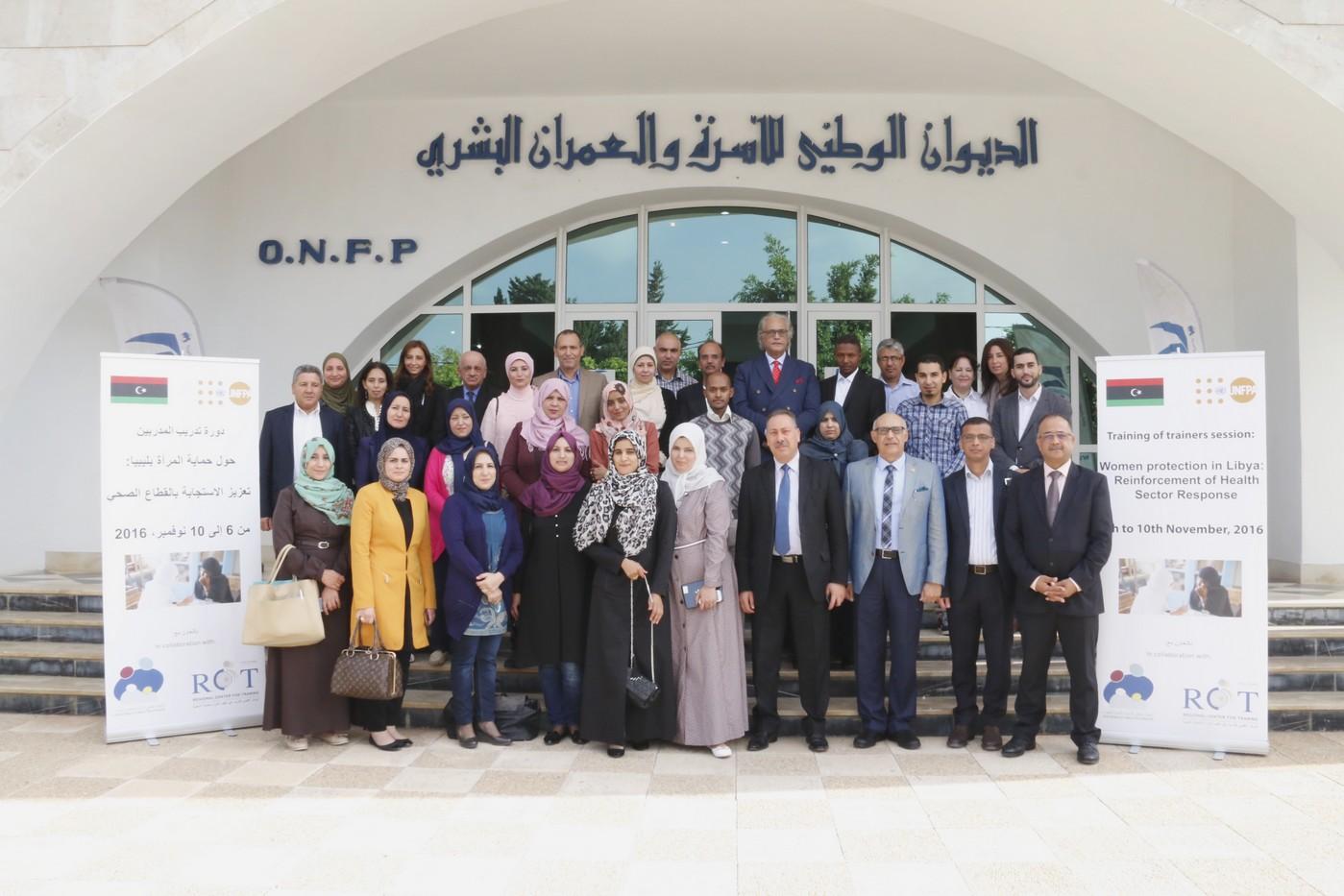 ضمن هذا الإطار و بالتعاون الوثيق مع وزارة الصحة (المركز الوطني لمكافحة الأمراض بليبيا) و مشاركة الديوان الوطني للأسرة و العمران البشري بتونس، ينظم الصندوق أول دورة تدريب متقدمة للمدربين تعنى بحماية المرأة مكرسا بذلك تعزيز استجابة قطاع الصحة الليبي لما له من دور أساسي في الرصد والتدخل في حالات الإساءة و العنف اللذين يمكن أن تواجههما المرأة و الشابة الليبية. مع واقع أن مراكز الرعاية الصحية غالبا ما تكون وجهة أولى لهؤلاء النساء اللاتي يواجهن سوء