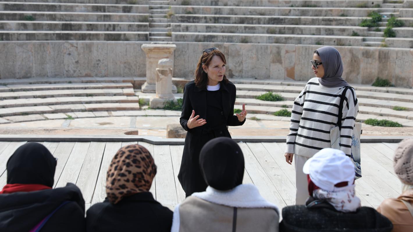 AL KHOMS – 6 February – A group of young women from across Libya joined Deputy Special Representative for the Secretary General and Resident and Humanitarian Coordinator, Georgette Gagnon, on a visit to Leptis Magna to highlight the importance of Libya’s cultural heritage for the country’s future and its young people.