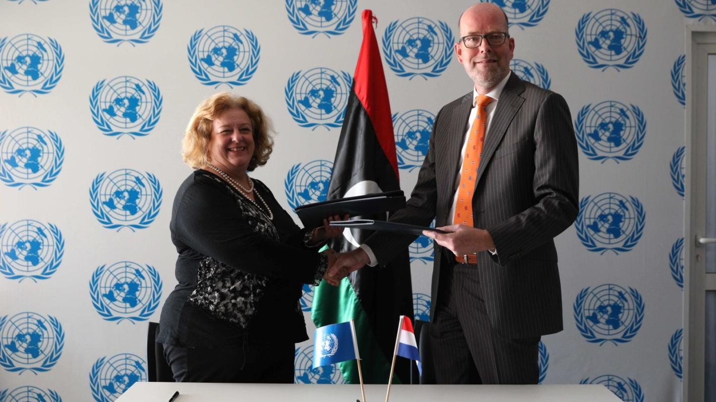 The signing ceremony took place today at the United Nations Support Mission in Libya’s Tunis office. The Netherlands Government committed USD 1.65 million to UNDP’s electoral project fund designed to boost the High National Elections Commission’s (HNEC) capacity to manage electoral processes that are in accordance with internationally recognized best practices and principles.