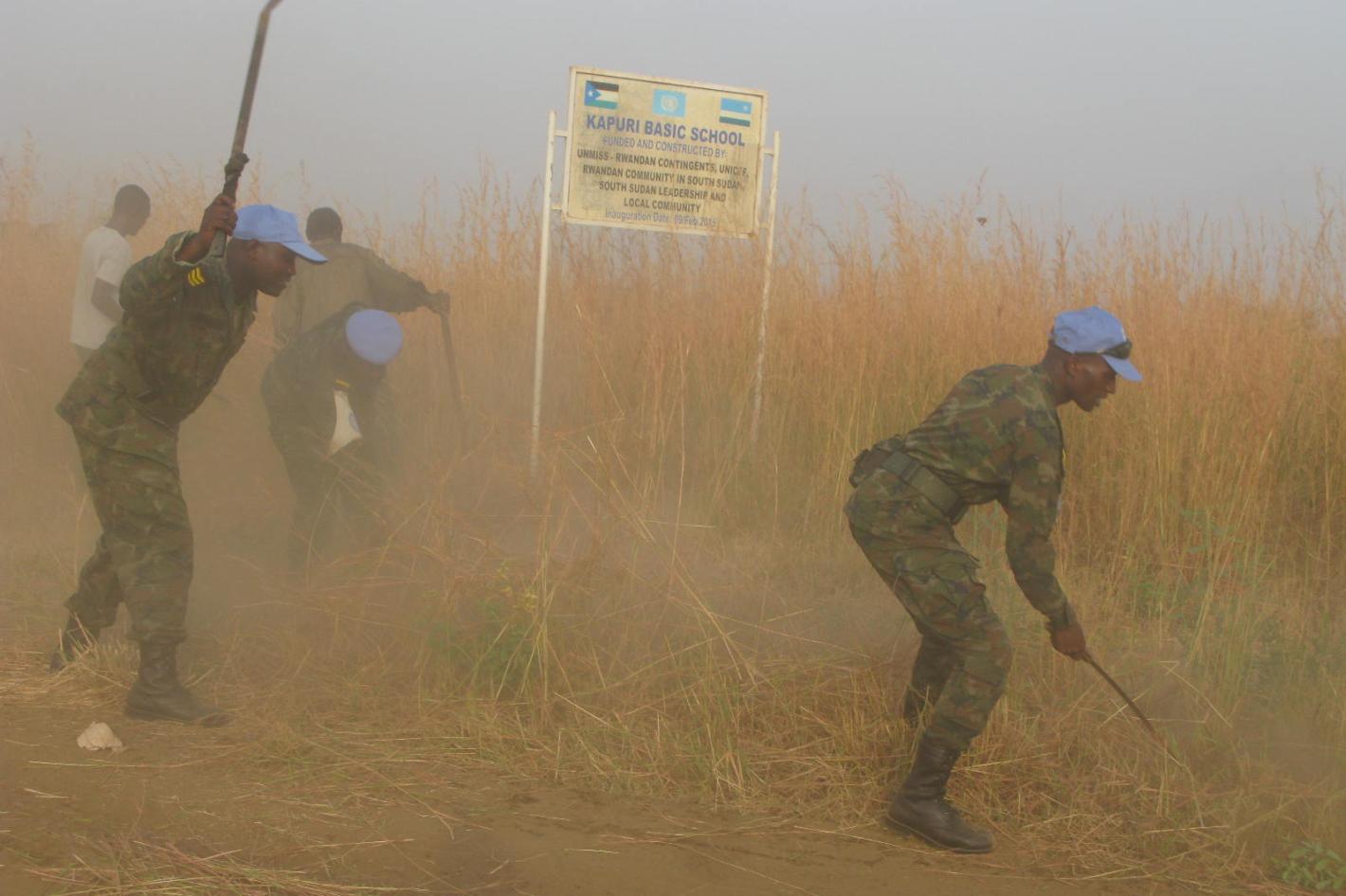 With pangas, slashers, hoes and grass-cutting machines, a team comprising of Kapuri area residents, students of Kapuri primary school, UNMISS Rwandan Contingent, as well as members of the local population today (Saturday 28…