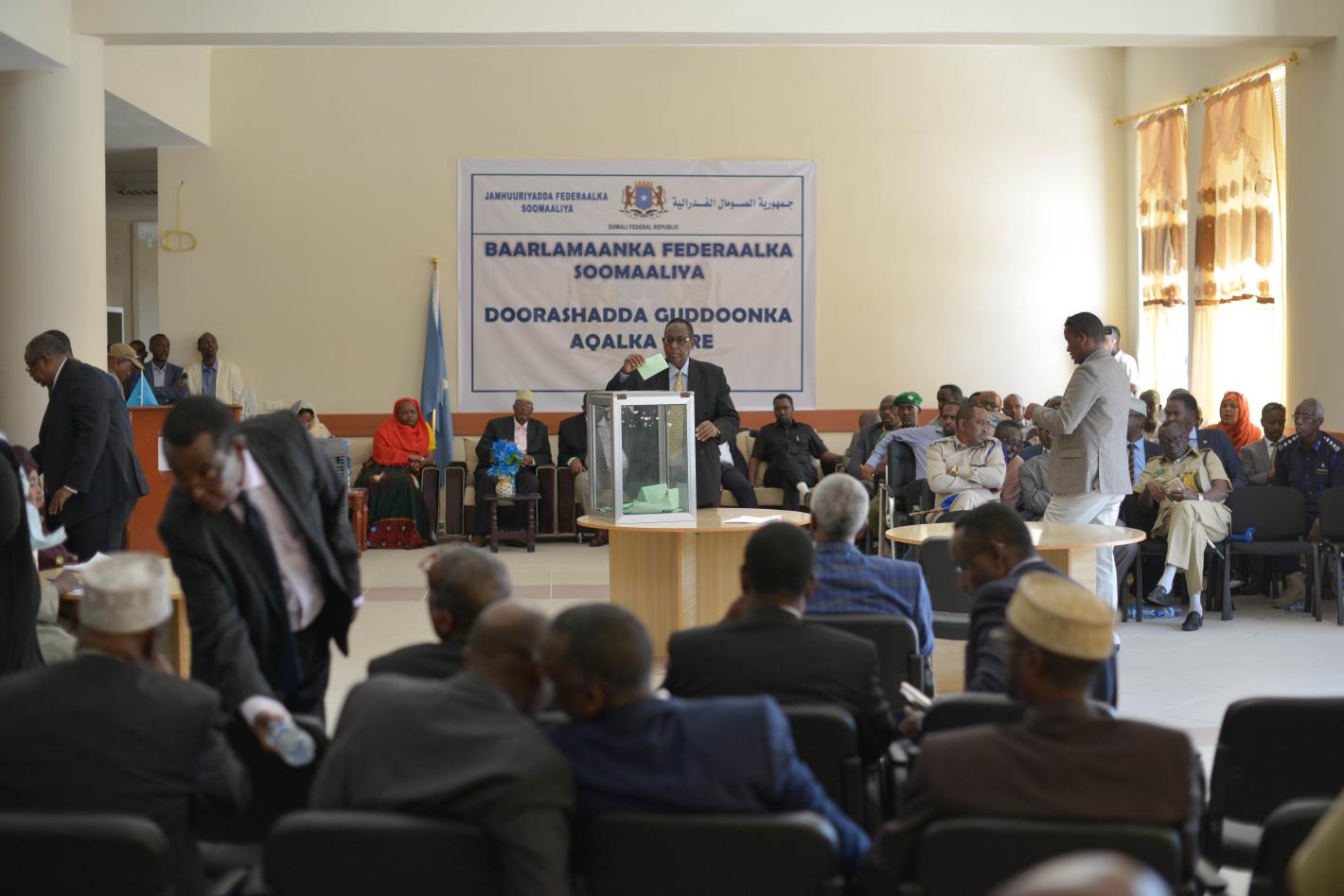 Members of Somalia’s Upper House today elected Abdi Hashi Abdullahi as their new speaker during a voting exercise held in the Somali capital. The veteran politician defeated his rival Mustaf Mohamed Qodah by receiving 43 of…