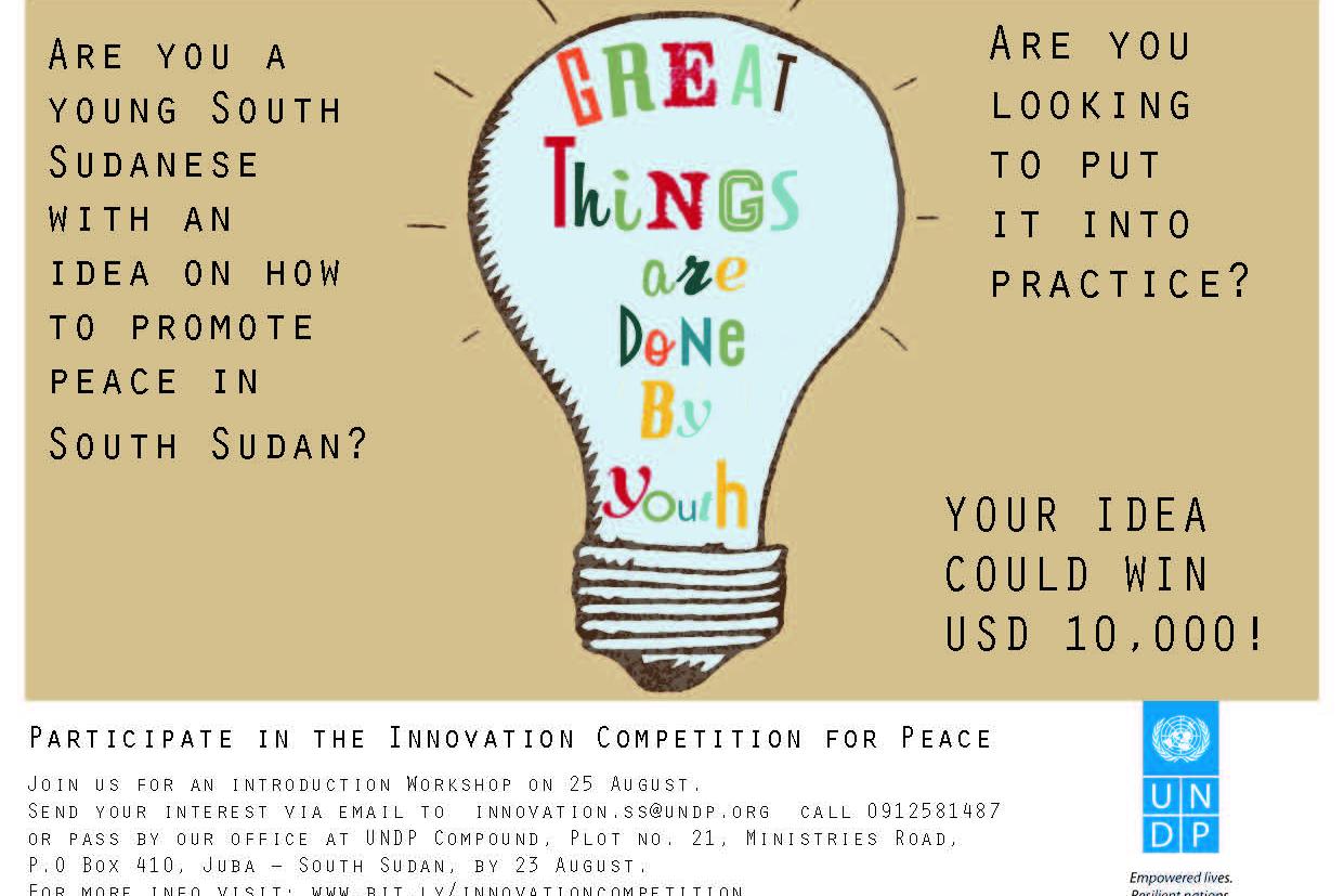 Are you young* and hold the key to sustainable peace in South Sudan? Then UNDP South Sudan is looking for you**. The UN agency is launching an innovation challenge for youth -- individuals and groups -- with out-of-the-box…