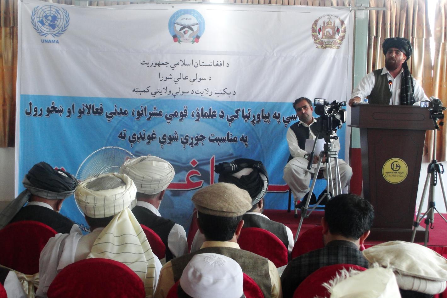 GARDEZ - The restoration of peace is not only up to the government but is the responsibility of every Afghan citizen, according to participants at a UNAMA-supported meeting in Gardez. Around 100 people, including community…