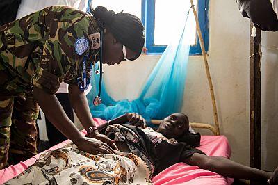 UNMISS Kenyan doctor working in maternity ward at Warrap State Hospital in capital Kuajok, as part of civil military activities. Photo: UNMISS/JC McIlwaine