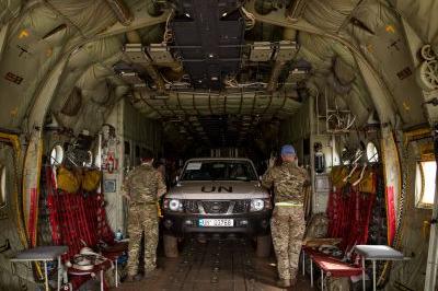British Royal Air Force C-130 Hercules, which has assisted UNMISS in moving about 20 tons of cargo a day between Entebbe, Juba and Malakal, Upper Nile State, over the last two weeks. Photo: UNMISS/JC McIlwaine