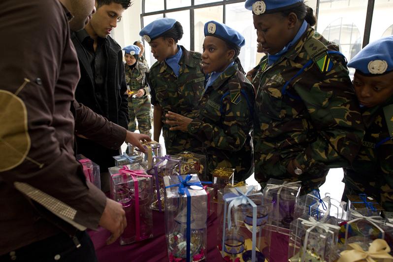 Tanzanian peacekeepers buying handicrafts from the local Southern cooperatives at the International Women’s Day celebration held at Tyr’s Cultural centre