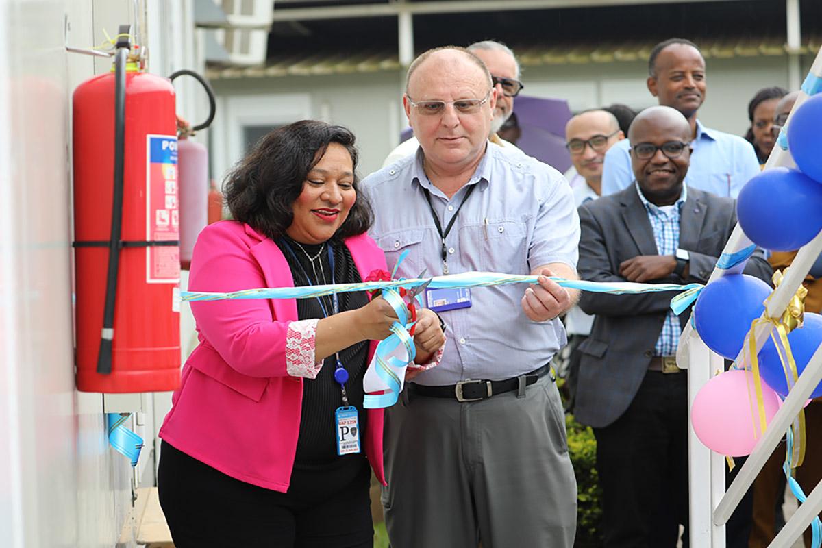 Ms. Nalini Contreras and Mr. Yury Cherep cut ribbon to launch Lactation Station