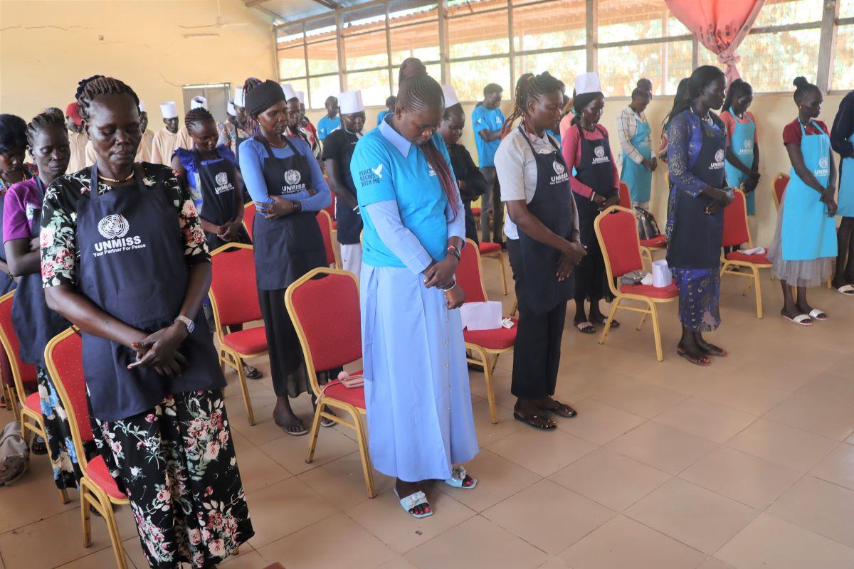 In collaboration with Women's Vision organization, a three-month UNMISS vocational training helped local women of Bentiu to acquire practical skills in tailoring, bread-making and hairdressing. Photo by Jacob Ruai/UNMISS…