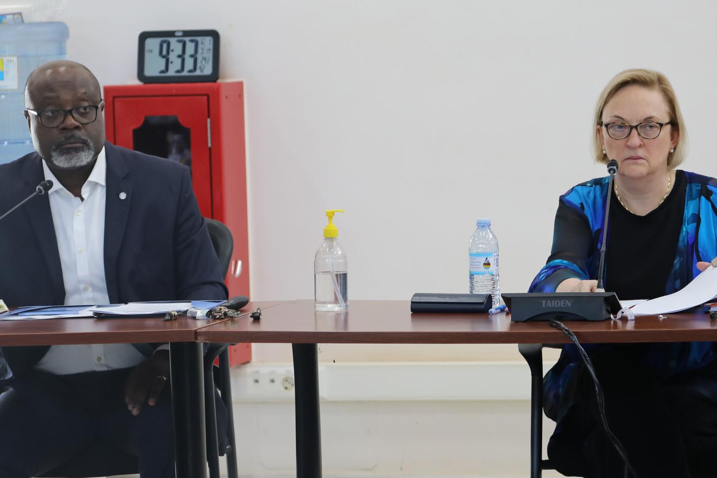 Paulin Djomo, Director RSCE (l) and Lisa Buttenheim, ASG for Support Operations in DOS listen to presentation during the 5th Steering Committee Meeting