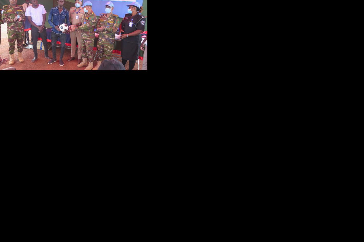 Youth residing in the Naivasha camp for displaced people recently received sports equipment and clothes from Bangladeshi peacekeepers serving with UNMISS. Photo by Jimmy Ludanga/UNMISS