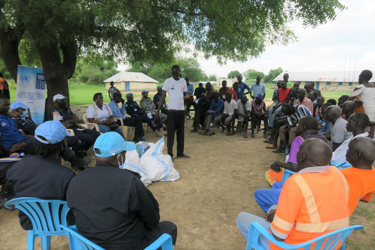A dialogue-based forum organized jointly by UNMISS and state authorities in Malakal aimed at building trust between citizens and local uniformed personnel through open dialogue. Photo by Samuel Adwok/UNMISS.