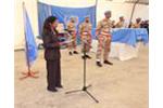 Officers of the United Nations Mission in the Central African Republic and Chad (MINURCAT) take over military operations of the mission from the European Forces (EUFOR) during a transfer of authority ceremony.