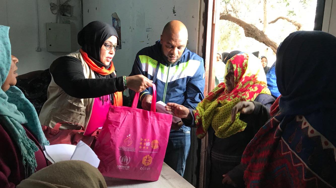 In order to respond to the growing needs of vulnerable displaced women across Libya, UNHCR and UNFPA, with the support of German funding, are currently distributing 8,517 dignity and hygiene kits in 16 different locations in the areas of Tripoli, Misrata, Sabha, Nafusa Mountains, Bani Walid , Janzour , Ubari and Murzaq. The kits contain hygiene and sanitary items such as soap, shampoo, tooth-brushes and toothpaste, as well as other items explicitly tailored towards the local needs of women and girls.