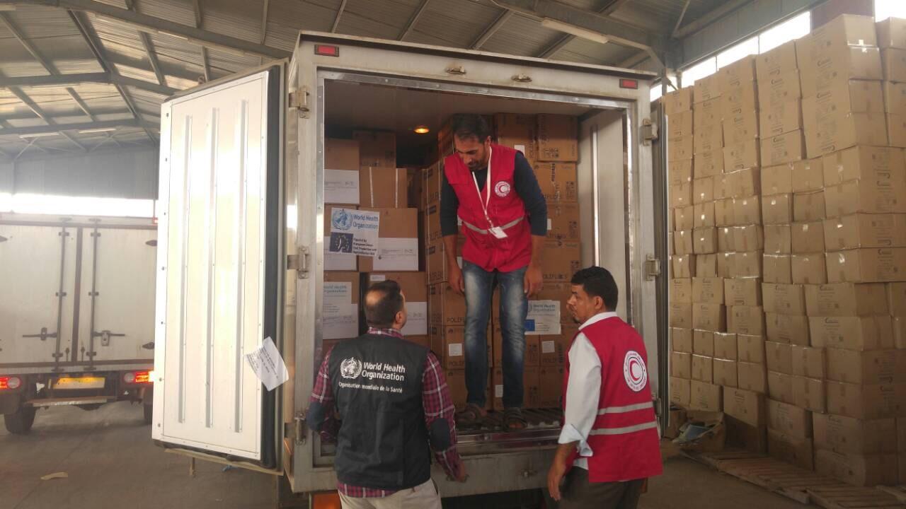 The World Health Organization (WHO) country office in Libya delivered on 1st November 2017 to Derna three (3) Trauma Kits which can treat more than 300 moderate and serious injuries. This kits were procured with financial assistance from European Union Civil Protection and Humanitarian Aid (ECHO). The WHO would like to thanks the Libyan Red Crescent for providing assistance in transportation the Kits to Derna and special thanks to ECHO for its continued commitment to support the humanitarian health needs in Libya.